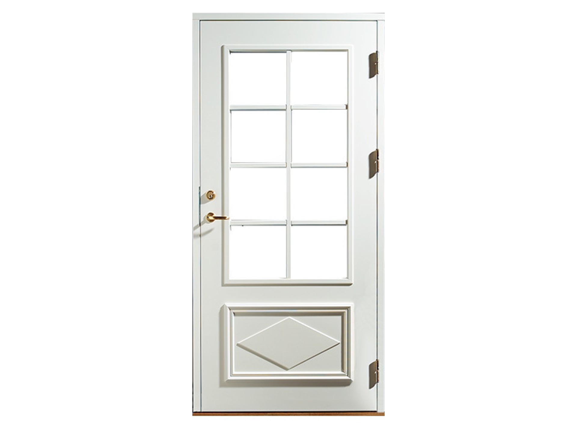 En ytterdörr i Österlenserien och är perfekt om man vill få in lite mer ljus. Som standard levereras klart säkerhetsglas med spröjs SP 3:1. Som tillval kan man få Cotswold , hamrat eller etsat glas samt utförande i teak eller ek.