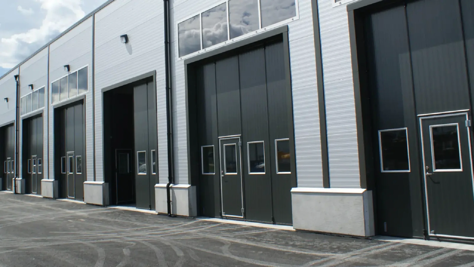 Sju meter bred och fem meter hög. Åtta fönster och en dörr. Två- eller fem-delad. Du väljer storlek och utformning som passar dina behov. Självklart kan du även välja färg – vi har nio standardkulörer. Om ingen av dem passar kan vi även leverera vikportar i valfri NCS/RAL-kulör som specialbeställning. Du bestämmer, helt enkelt!