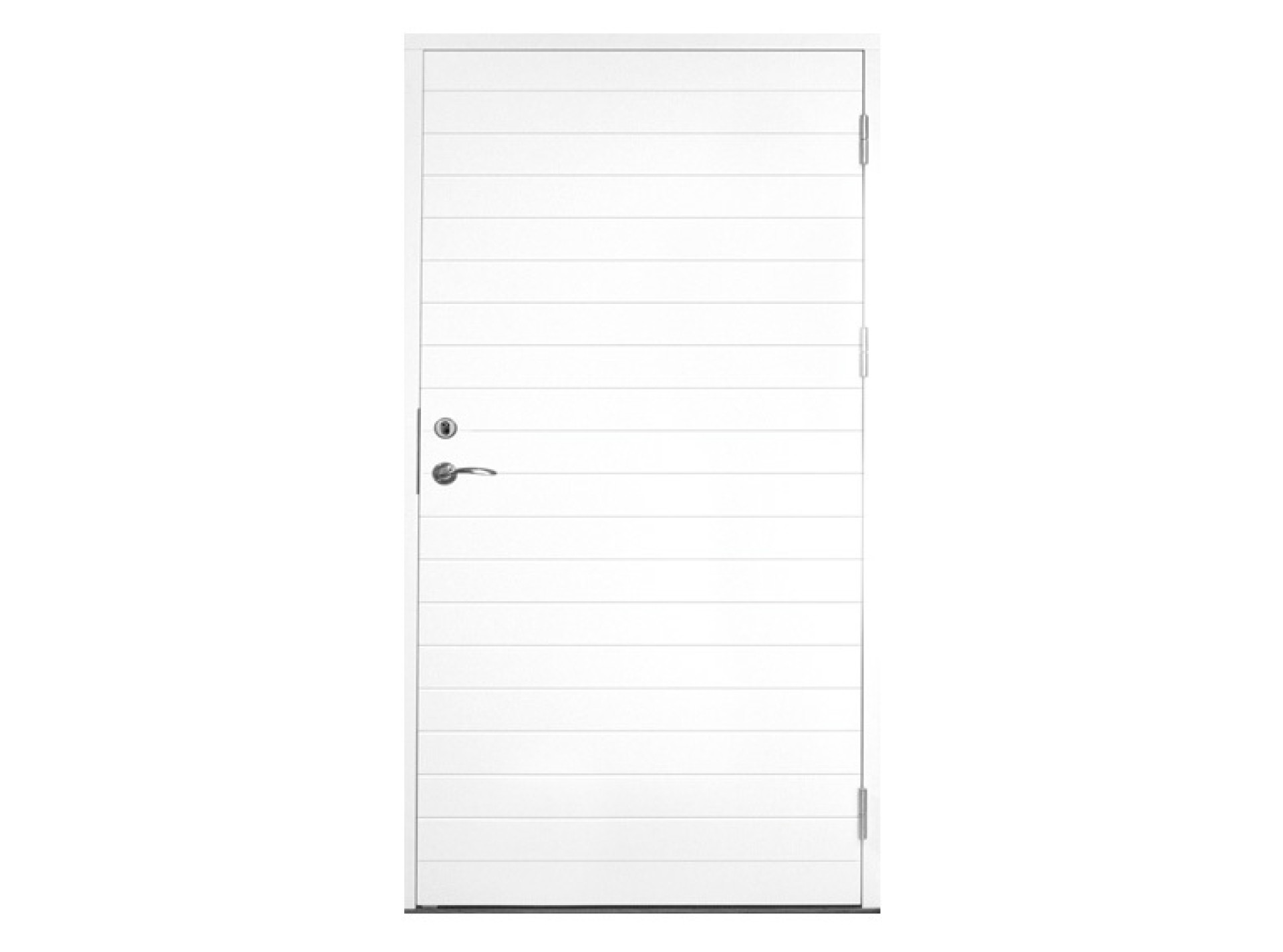 En dörr med fina raka linjer. Modellen passar likaväl i klassiska som moderna hus och är en väldigt populär modell.